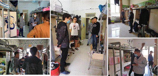 进入宿舍楼时,物业工作人员对李副书记、各位班主任进行了测温。检查宿舍时,李副书记强调了宿舍的通风,询问同学们每日消毒情况,以及“疫情防控期间学生宿舍登记表”的提交情况。对于卫生条件差的宿舍,责令同学马上打扫。检查期间,李副书记与各位老师还宣传了疫情的防控知识,并强调了做好宿舍内卫生、提高安全意识的重要性。同时,了解了同学们的就业情况和遇到的问题,辅导员赵老师针对就业问题,做了详细的解答。最后,各位老师告知同学们无论遇到什么问题,要多和班主任和相关辅导员沟通。